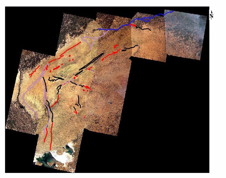 Megenta Line: Features mapped in Decorrelation Stretched image
